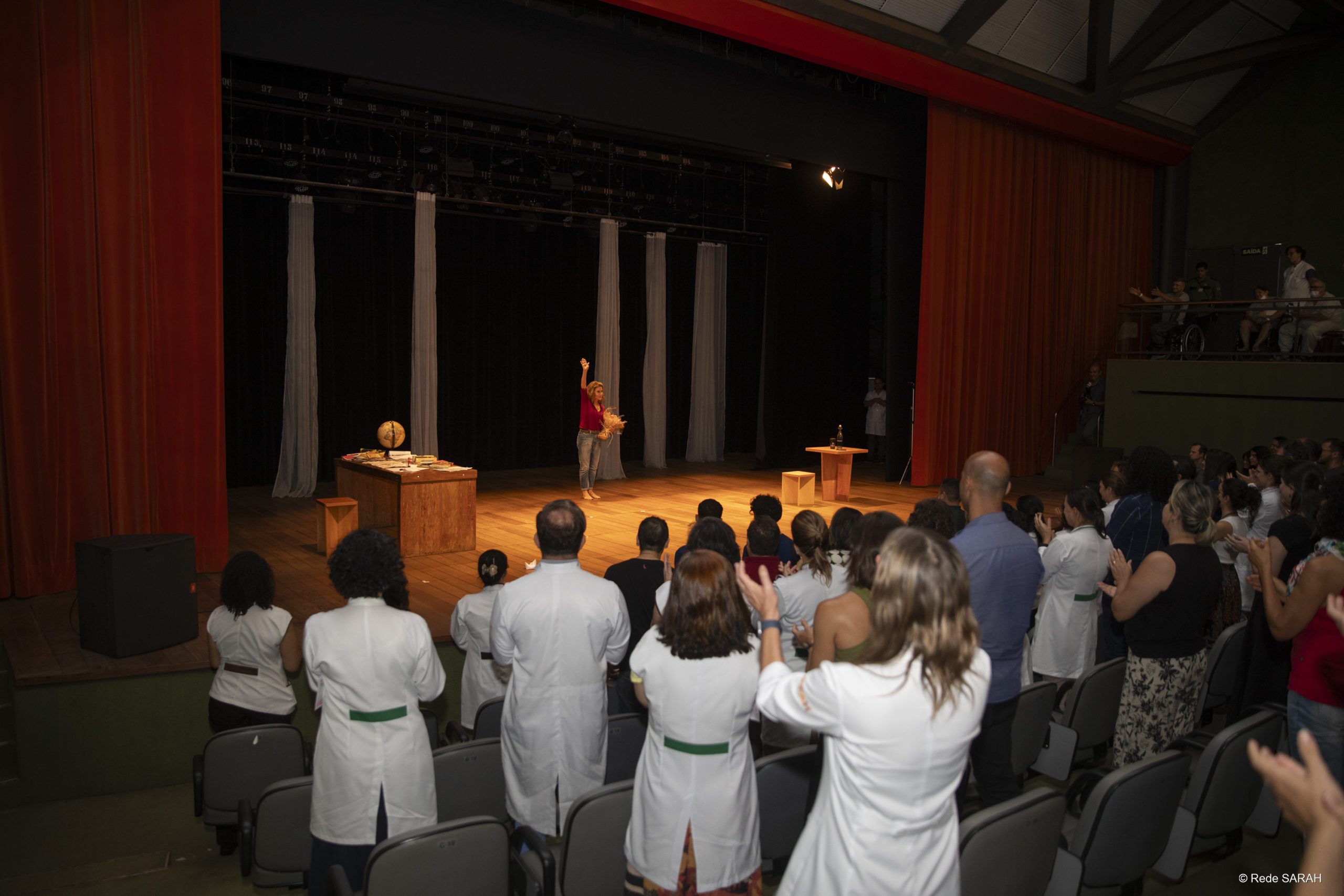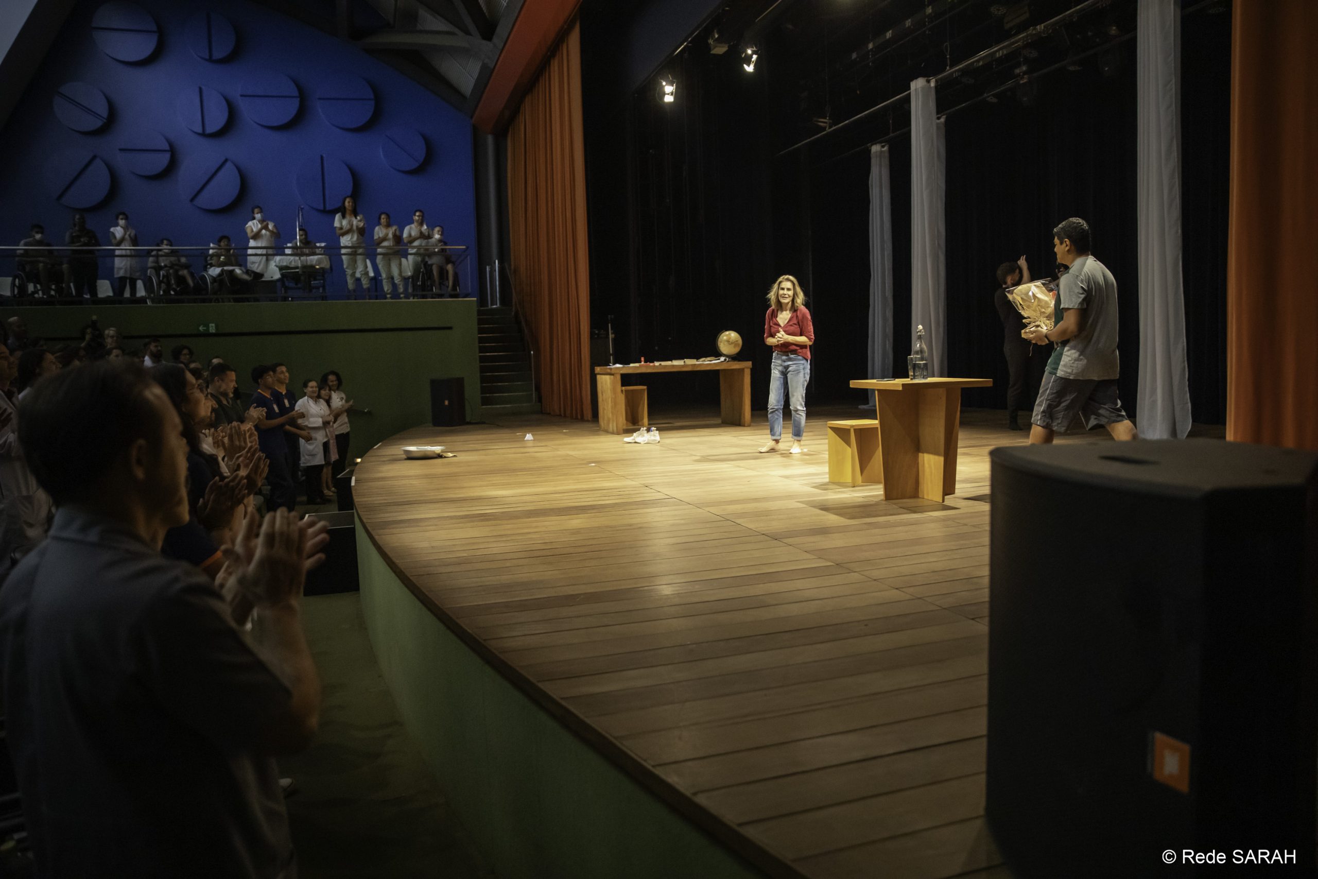 Ao final da apresentação, Maitê, com a voz embargada e visivelmente comovida, agradeceu à comunidade SARAH pela oportunidade.