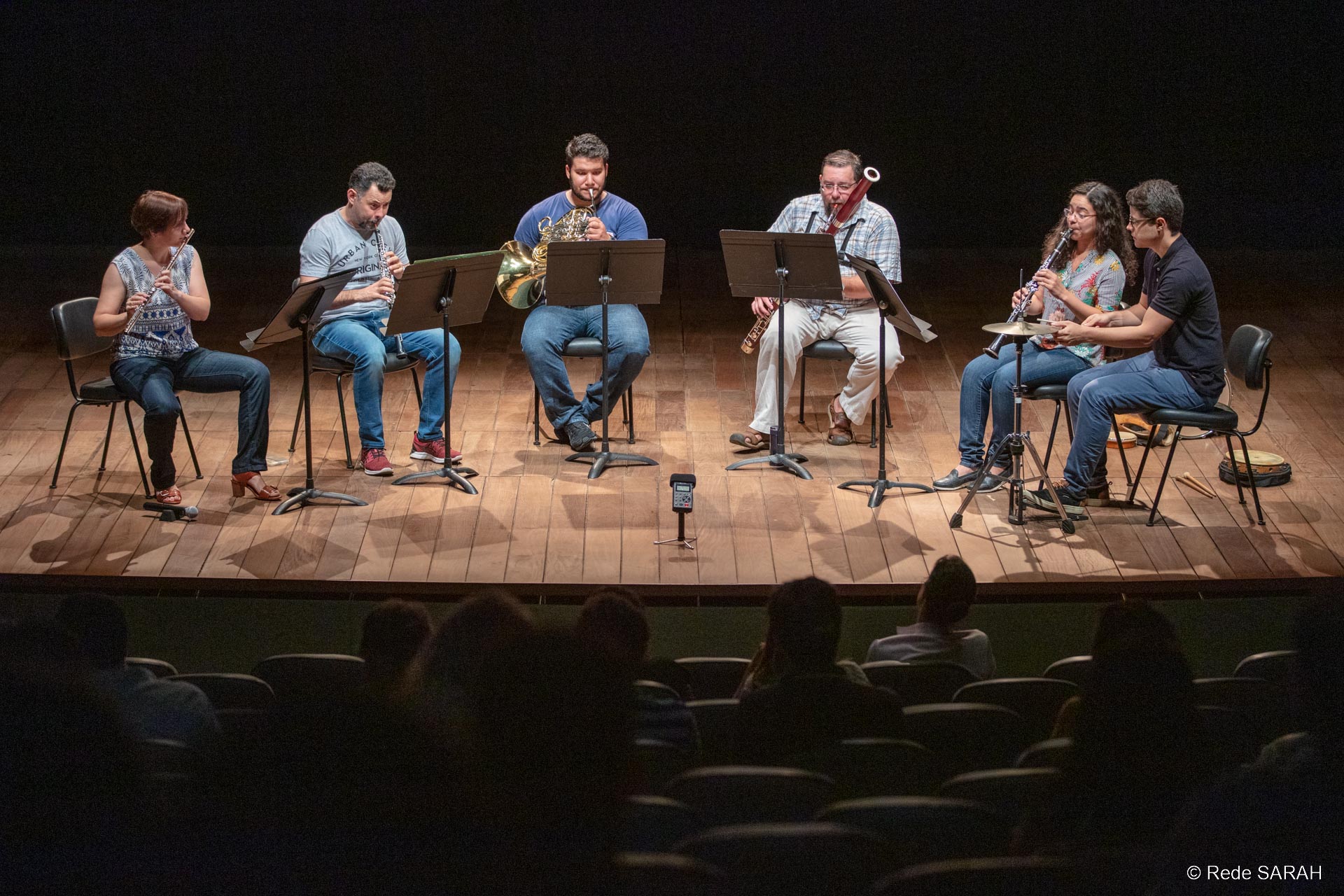 A Orquestra Sinfônica do Teatro Nacional Cláudio Santoro, dando sequência aos “Concertos da Saúde”, brindou pacientes, acompanhantes e colaboradores do SARAH Brasília com a apresentação do Quinteto de Sopros e Percussão”.