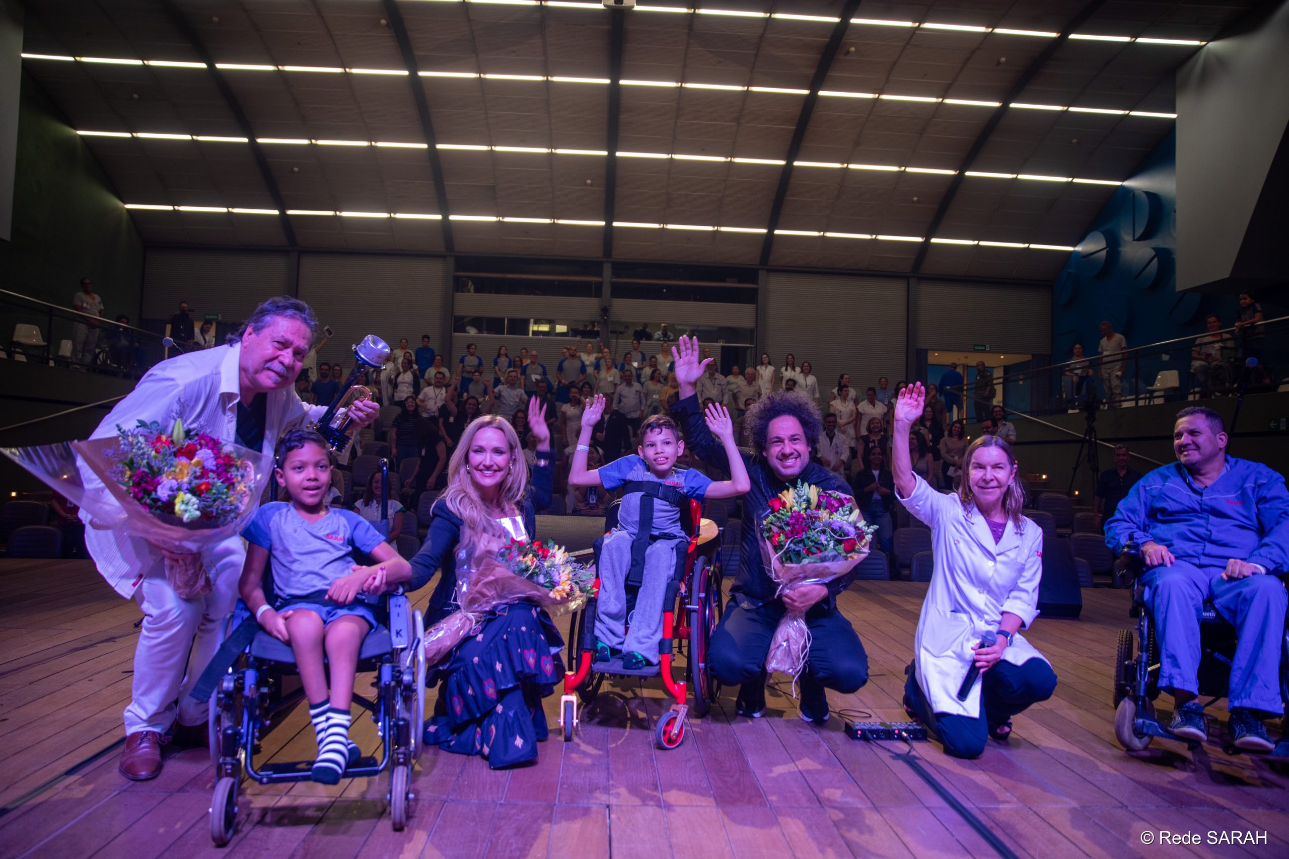 Ao fim da apresentação, os artistas receberam flores como forma de agradecimento dos pacientes Willian Maciel, 12 anos, João Pedro Alves, 7 anos e Claudio Nunes, 50 anos, do SARAH Brasília, e agradeceram a toda equipe do hospital, que conduziu e planejou a apresentação.