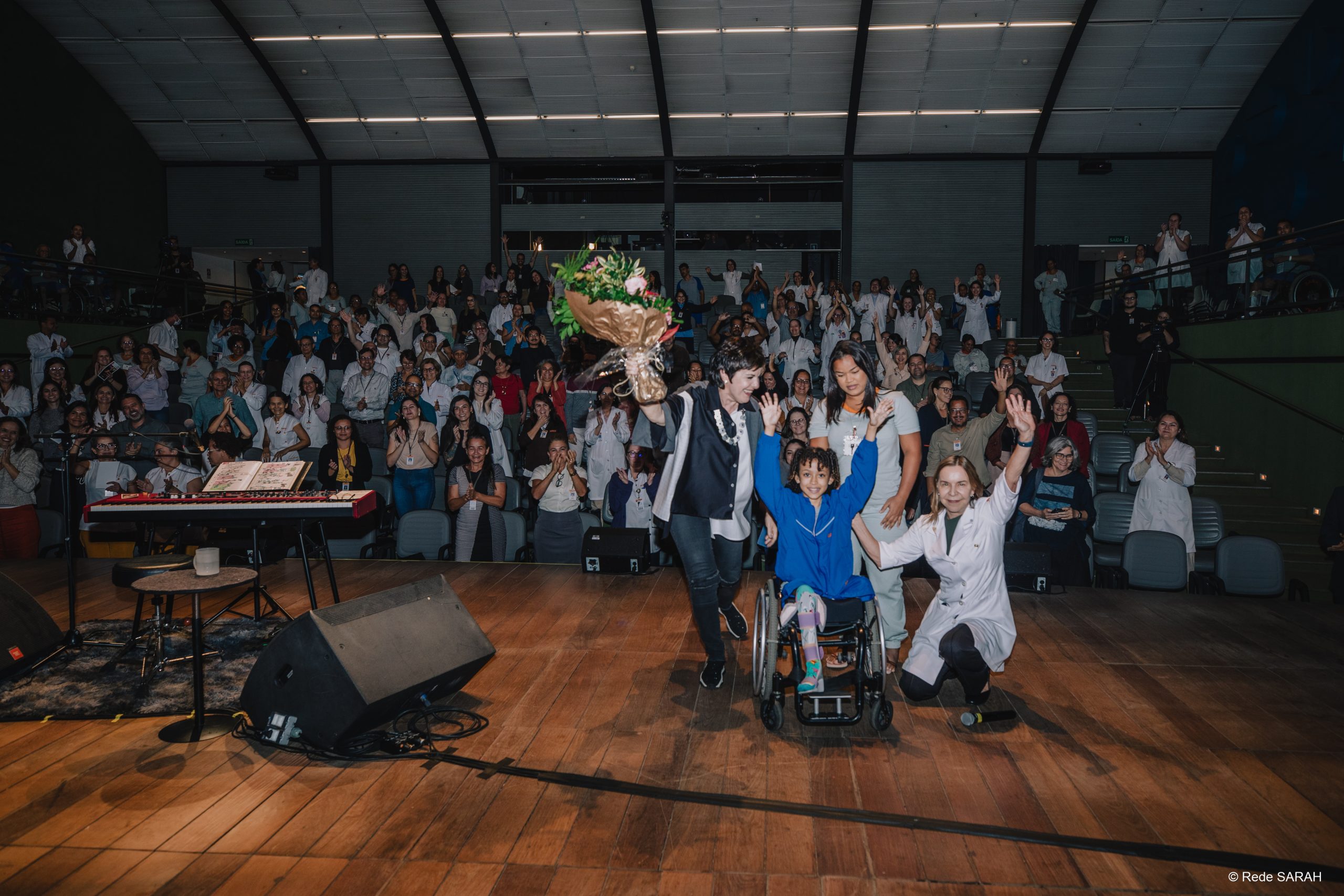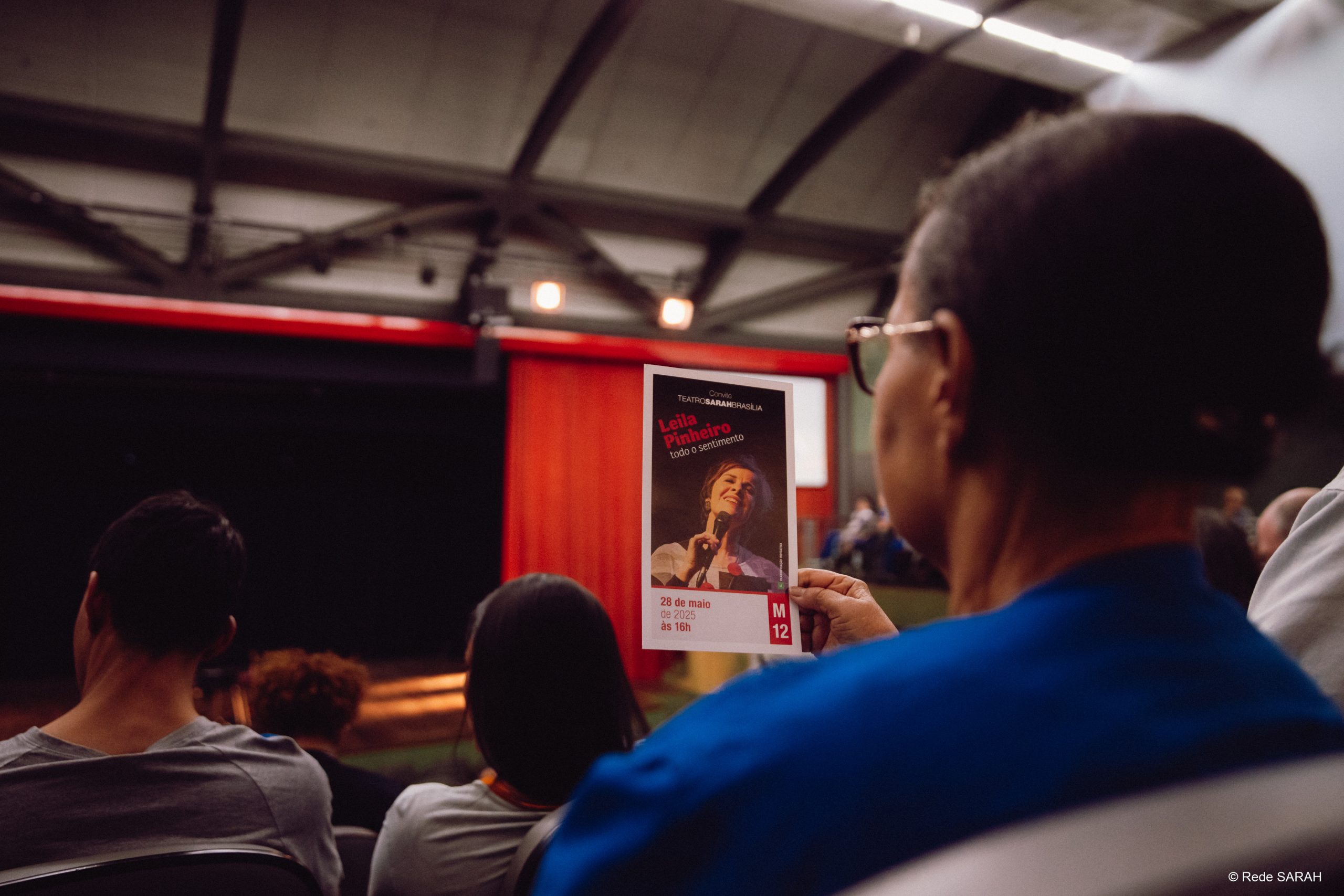 Junto ao coro da plateia, cantou “Serra do Luar” alternando as estrofes que cantava com o público, que completavam a letra, animados. A mesma energia foi levada em “Andar Com Fé” de Gilberto Gil, a quem Leila considera um grande amigo, e “Pro Dia Nascer Feliz”, música do álbum que a artista gravou em homenagem a Cazuza. “Hoje, foi à segunda vez que venho e eu amei a apresentação, fiquei muito emocionado. É um momento muito gratificante pra gente que está se reabilitando por que a música tem o poder de tocar a gente, de adentrar o mais fundo da nossa alma e ter essa oportunidade aqui no SARAH é muito rico, muito bom”, disse o paciente do SARAH, Milson Oliveira dos Santos, de 32 anos.