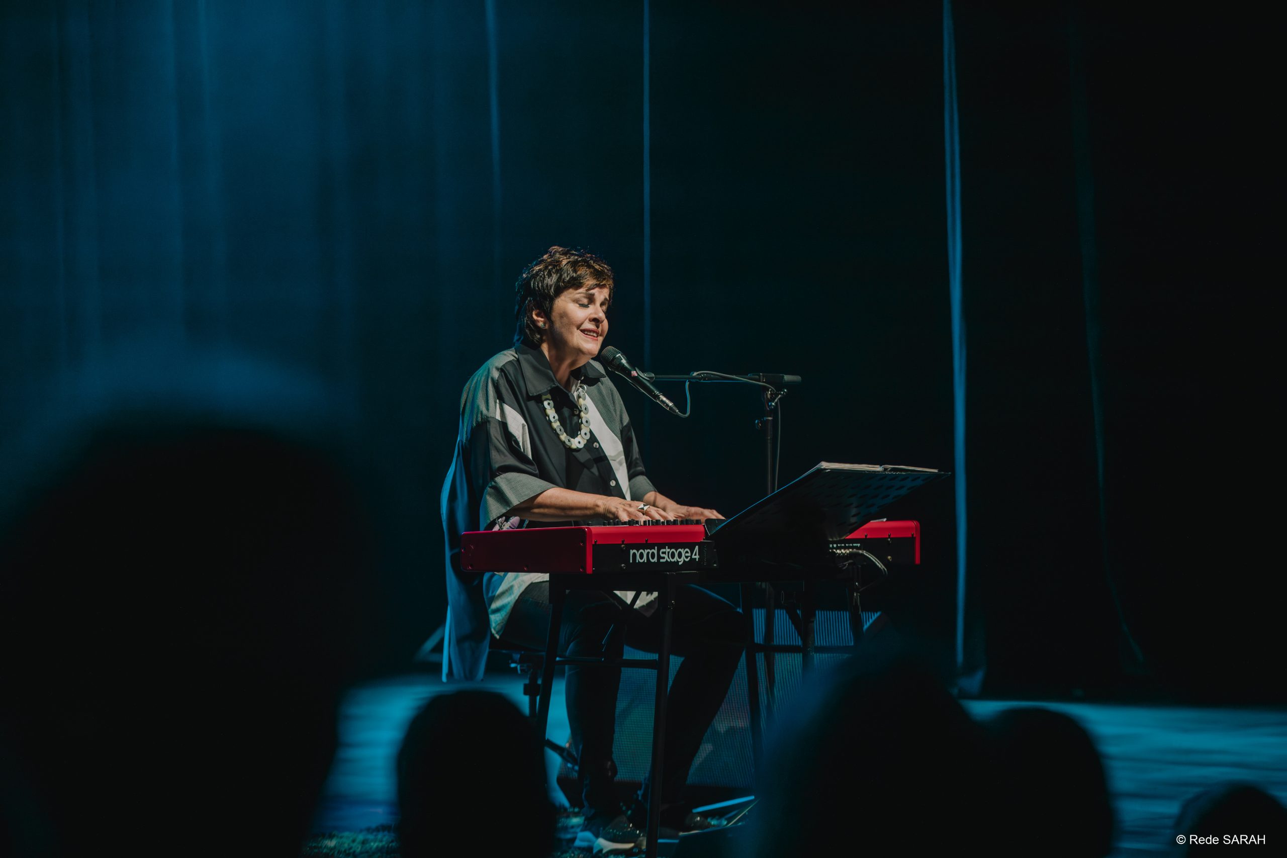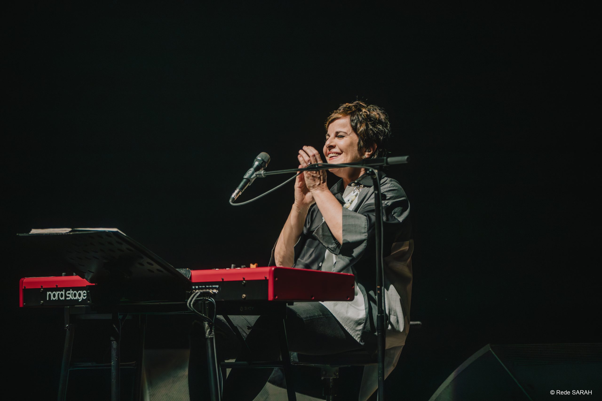 “Verde” e “Coisas do Brasil” foram as músicas escolhidas para abrir sua performance, já arrancando aplausos da plateia. A cantora e pianista, que chegou a cursar alguns semestres de medicina, comentou sobre como sente que o convite para cantar no palco do SARAH é uma forma de ajudar em todo o processo de reabilitação dos pacientes. “É com grande honra que recebi esse convite. Eu ia de fato ser médica, mas meu verdadeiro ofício é oferecer a vocês minhas receitas musicais. Escolhi cada música a dedo.”, declarou em meio ao show.