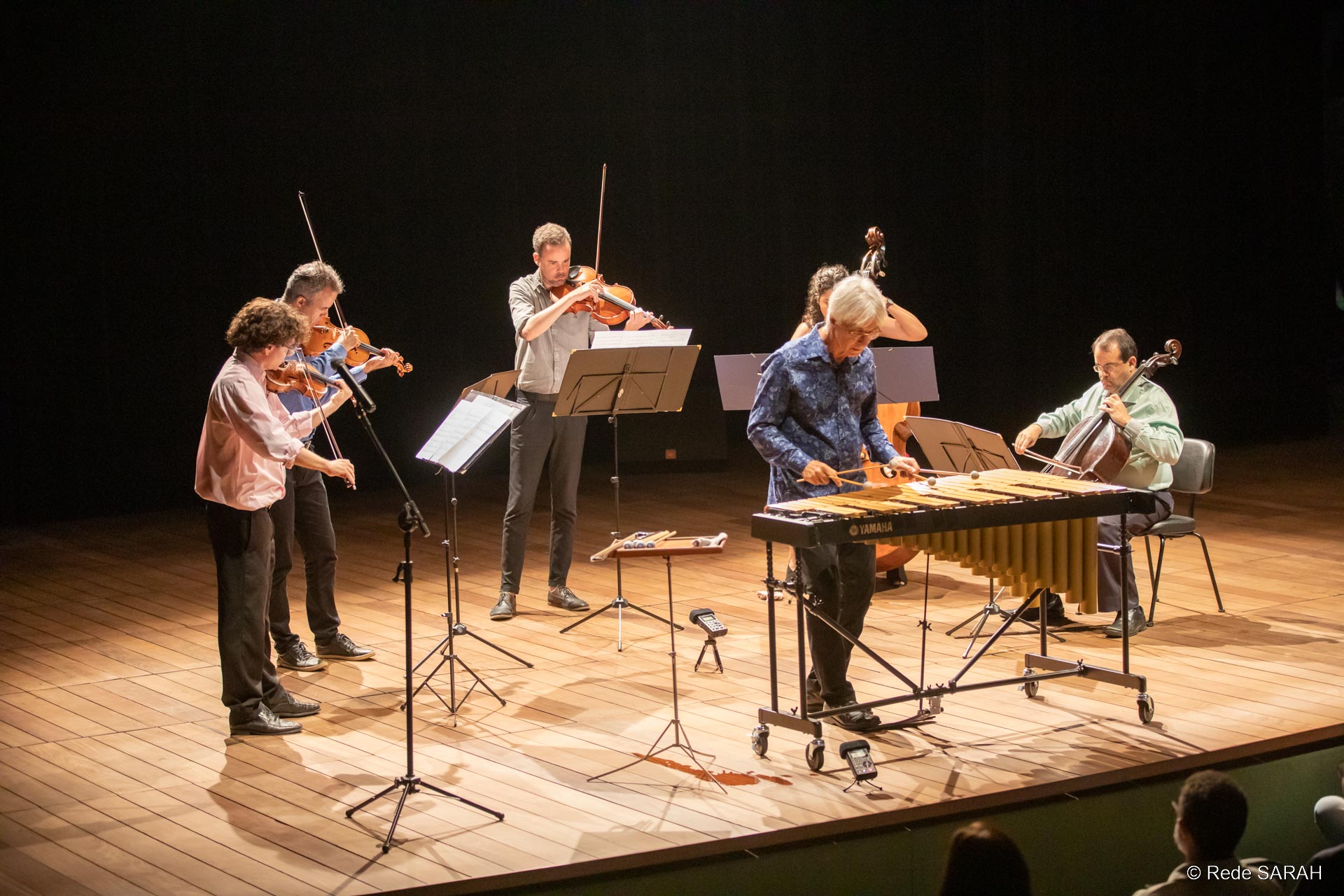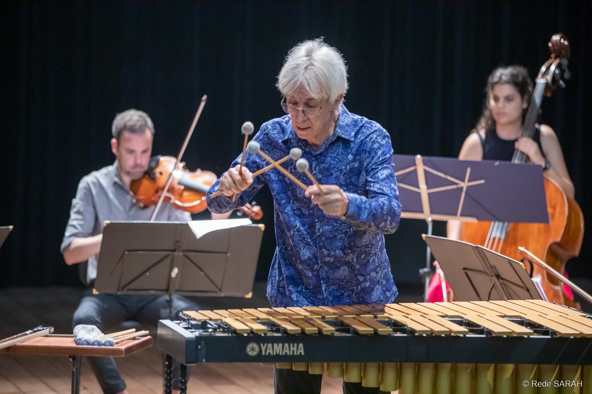 O percussionista e compositor Ney Rosauro apresentou-se dia 20 de novembro de 2019 no Teatro SARAH, trazendo ao público a obra Suíte Brasileira para Vibrafone, Cordas e Percussão.