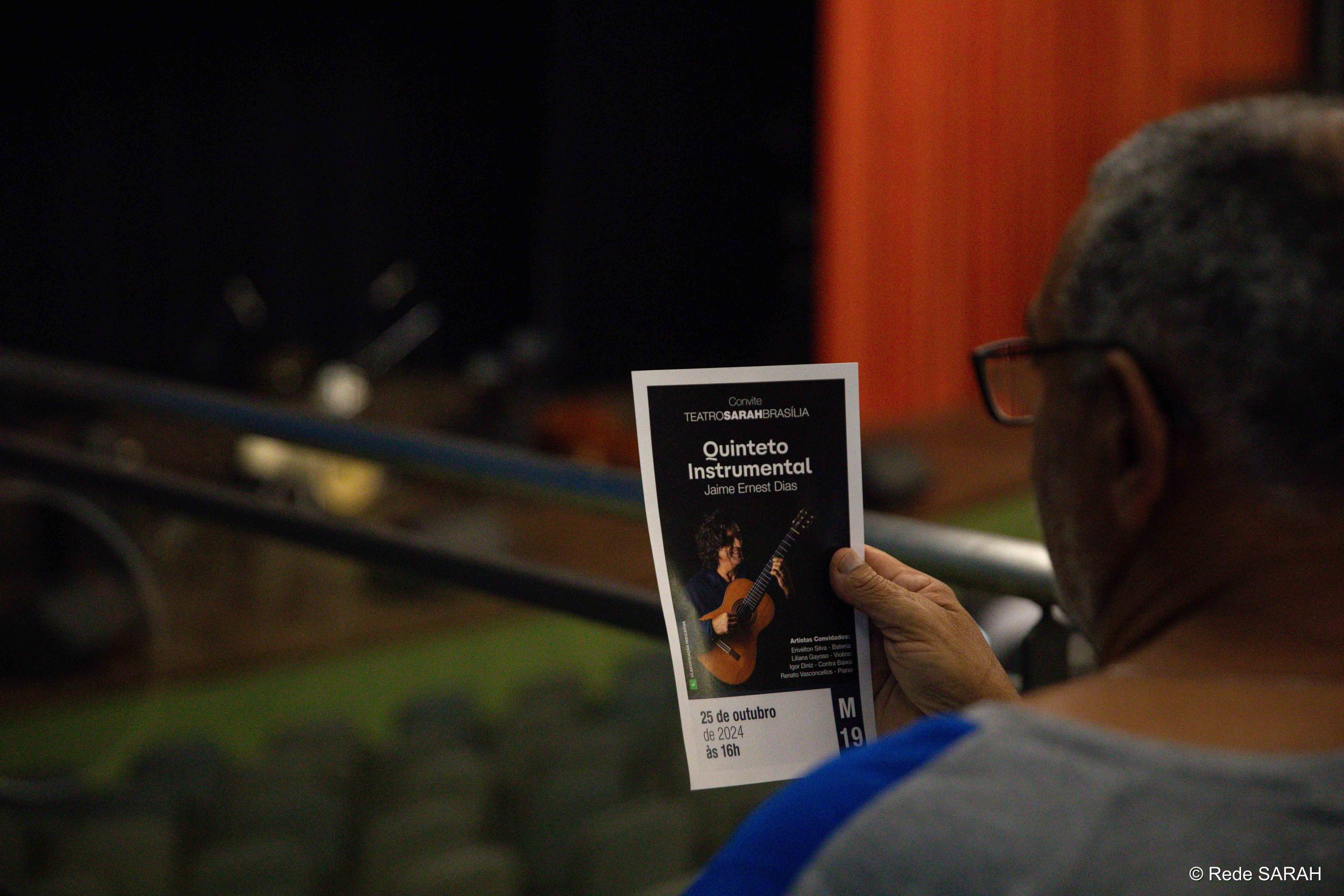 Em 25 de outubro, o Teatro SARAH ficou repleto pelos ritmos clássicos do jazz, choro, bossa nova e valsa em seu palco, com Jaime Ernest Dias e seu quinteto instrumental. Parte do trabalho autoral de Jaime, a iniciativa é composta por amigos do artista, contando com Renato Vasconcellos no piano, Igor Diniz no contrabaixo, Sérgio Morais na flauta e Erivélton Silva na bateria e, em uma improvisação impressionante, encantaram a todos os presentes com uma tarde acústica animada e suave.