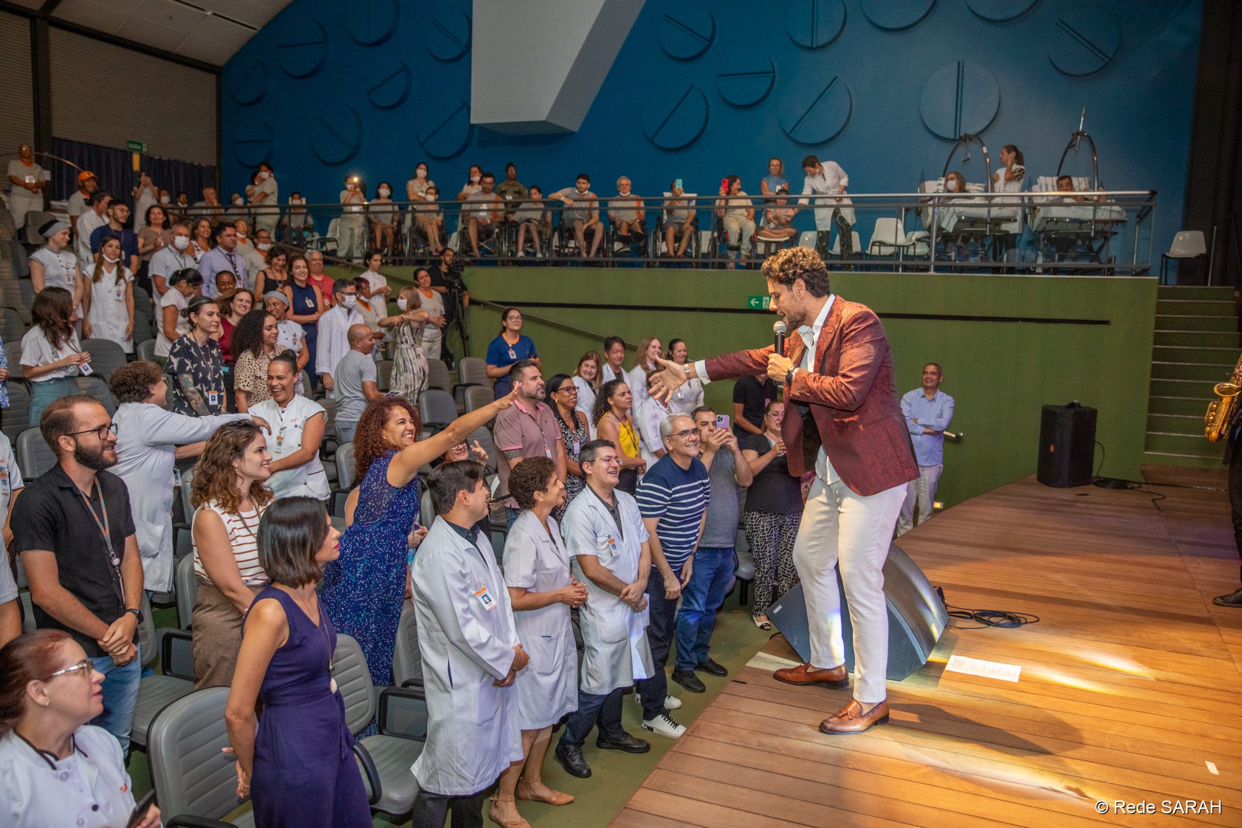 O cantor Thiago Arancam fez sua segunda apresentação no Teatro SARAH, na tarde do dia 13 de dezembro de 2023, com um repertório internacional de músicas líricas e populares.