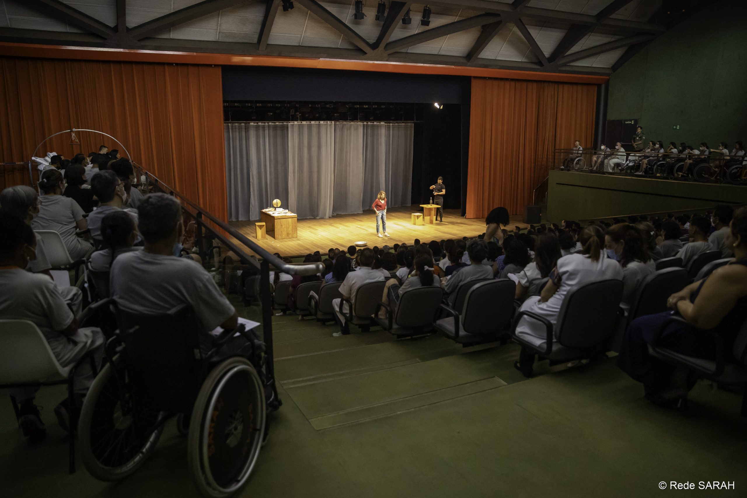 Ao final da apresentação, Maitê, com a voz embargada e visivelmente comovida, agradeceu à comunidade SARAH pela oportunidade.