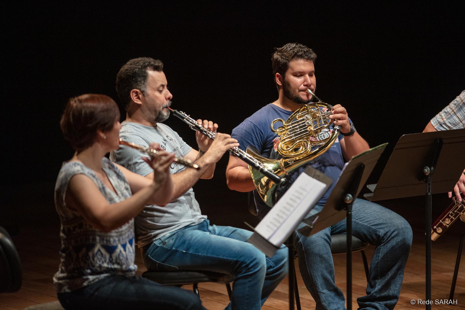 A Orquestra Sinfônica do Teatro Nacional Cláudio Santoro, dando sequência aos “Concertos da Saúde”, brindou pacientes, acompanhantes e colaboradores do SARAH Brasília com a apresentação do Quinteto de Sopros e Percussão”.