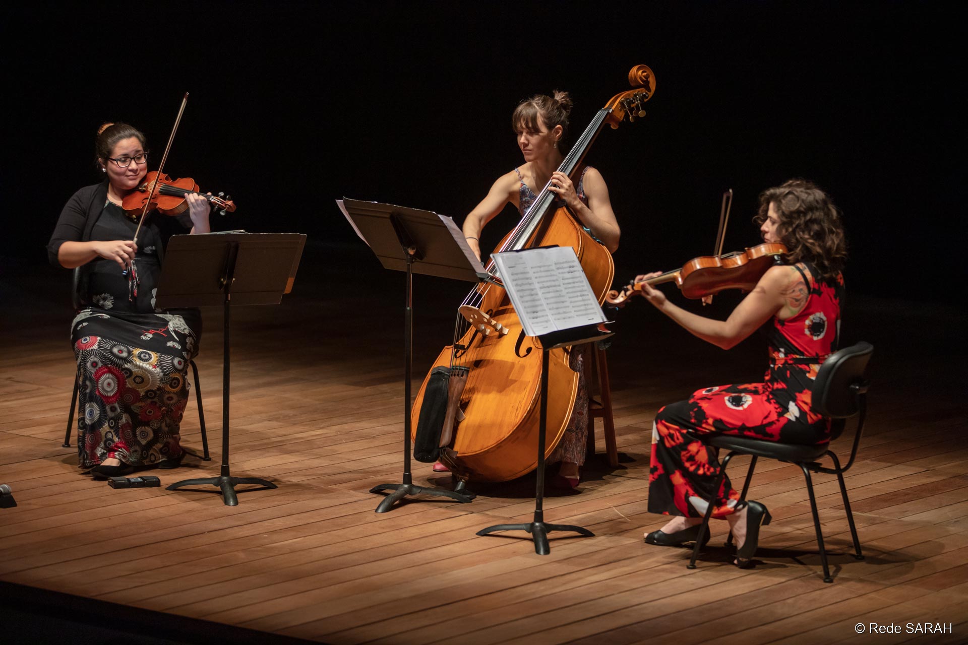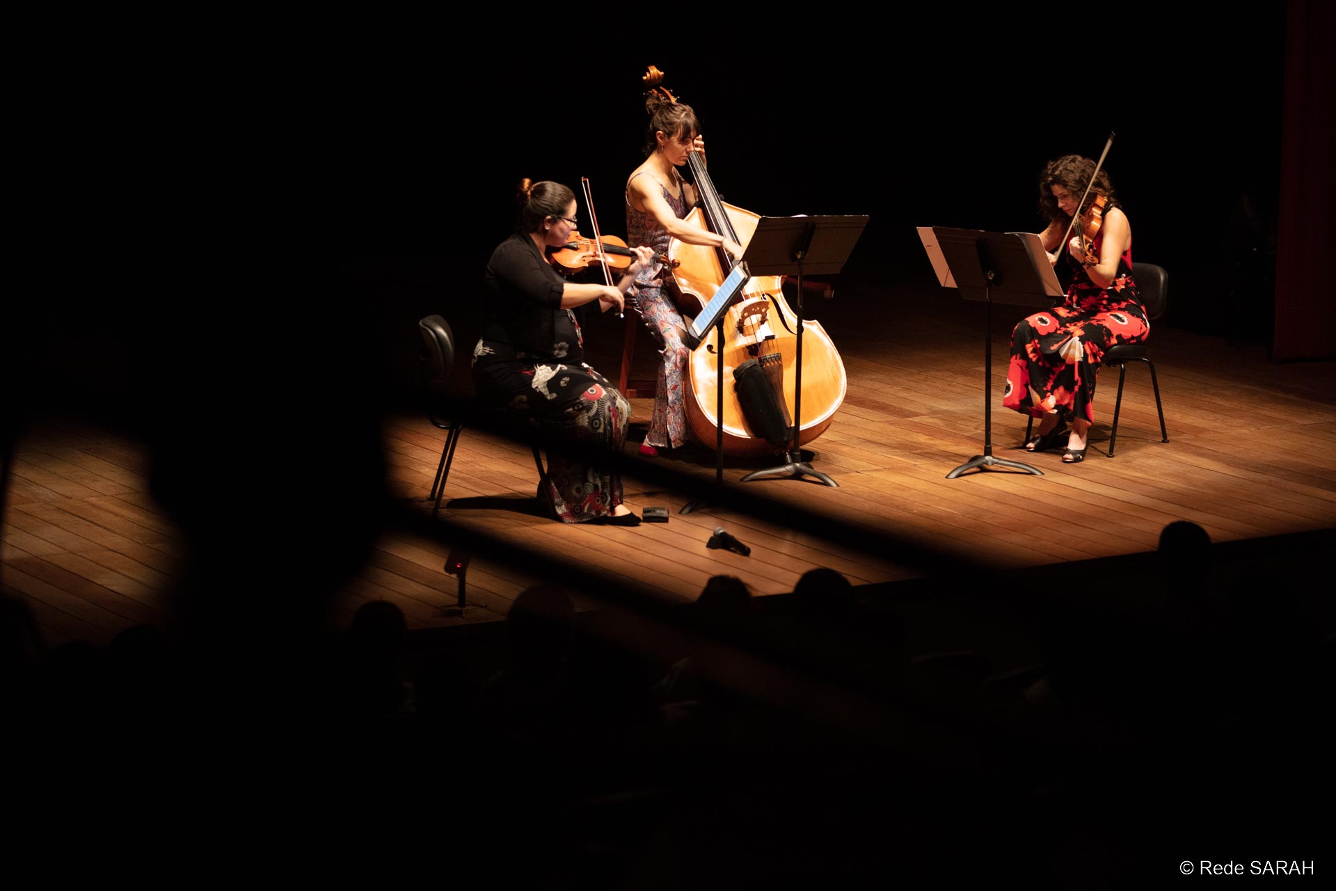 O Trio, composto por Luciana Arrais, no violino, Cindy Folly, na viola, e Larissa Countrim, no contrabaixo, executou um repertório primoroso e variado, que agradou e animou a todos na tarde do dia 30 de janeiro de 2019.
