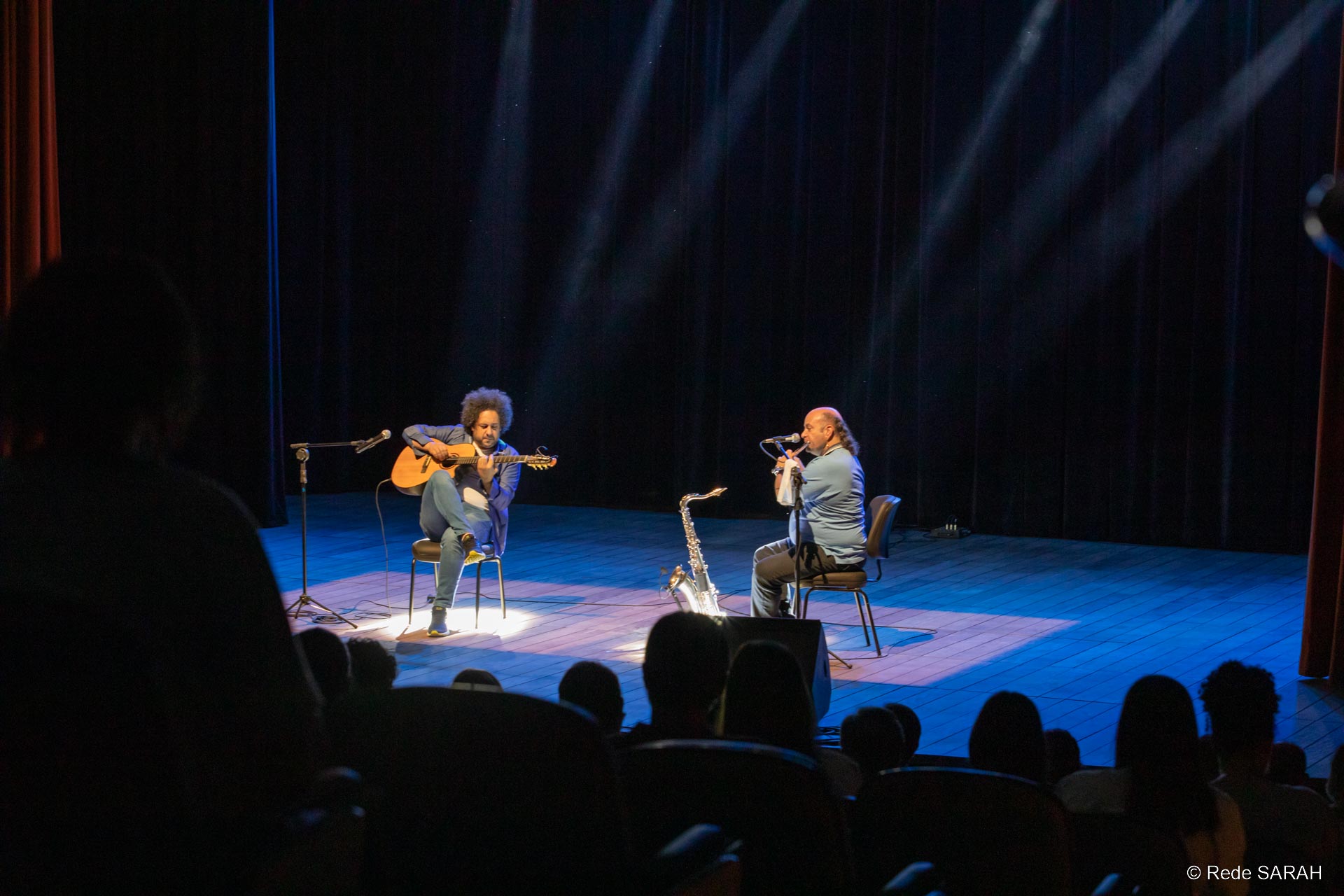 O Teatro SARAH recebeu os músicos Diego Figueiredo, violonista e guitarrista premiado, e Derico Sciotti, saxofonista, flautista e eterno integrante do sexteto do Programa do Jô.
