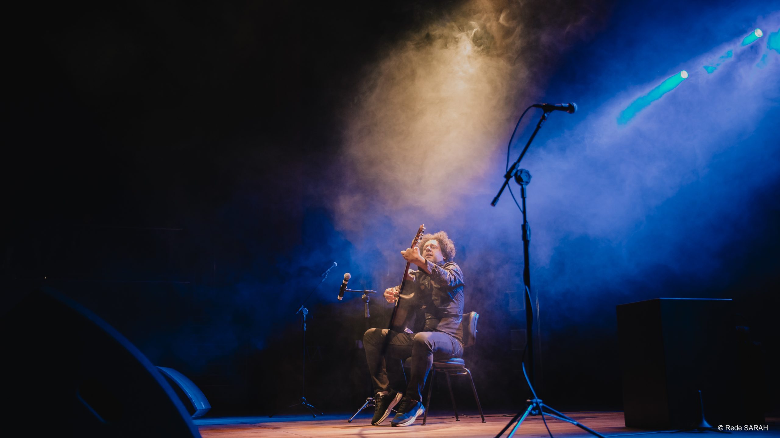 O show iniciou-se com o Diego conversando com a plateia e ressaltando sua felicidade de estar no palco do Teatro SARAH mais uma vez. “É uma alegria estar aqui tocando neste projeto (Arte e Reabilitação) pela quarta vez para criarmos juntos, com muita alegria, uma tarde bonita”, disse.