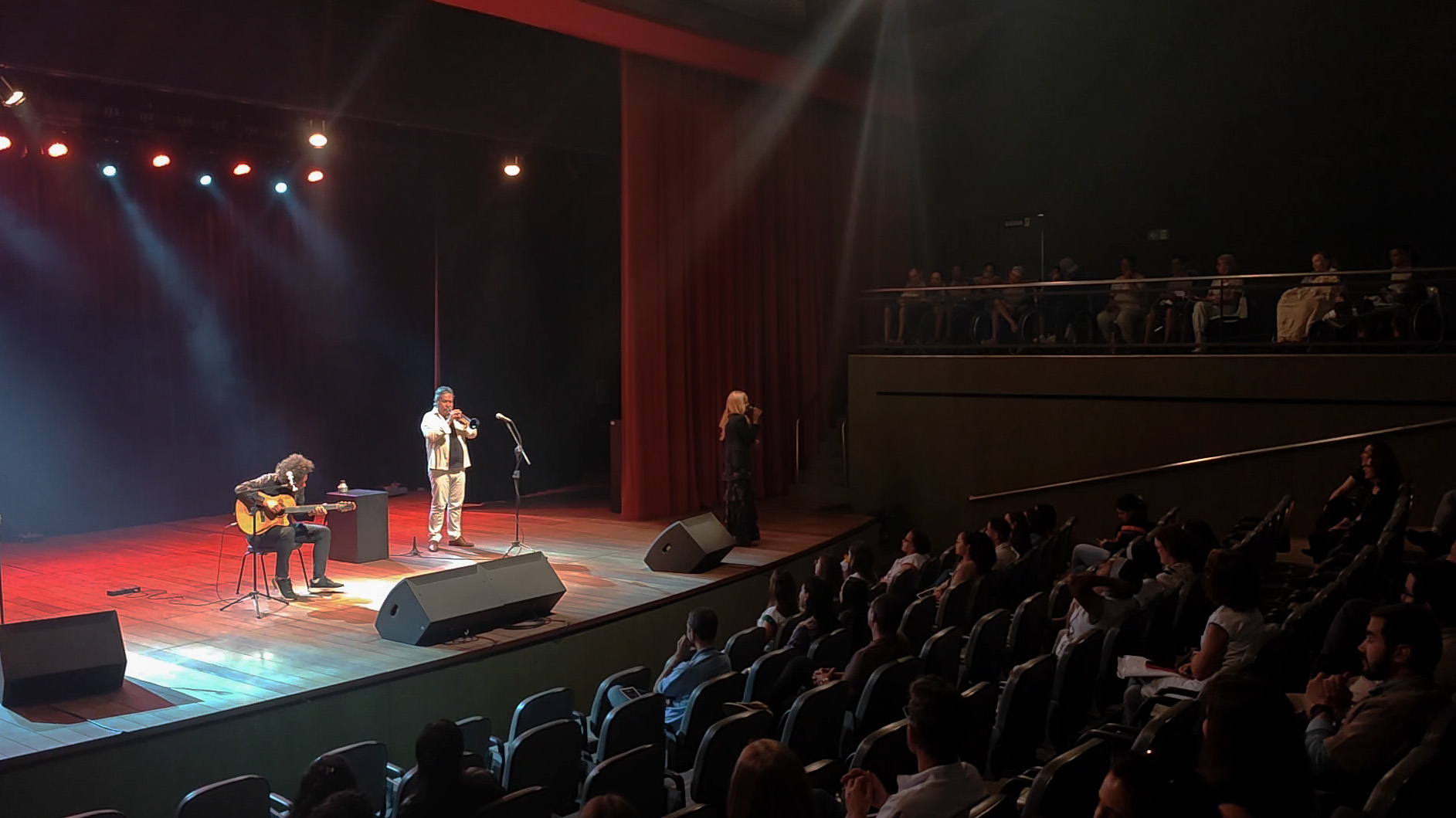 Na tarde de 23 de outubro, o Teatro SARAH recebeu mais uma vez em seu palco o musicista e violonista Diego Figueiredo e seus convidados, o maestro Chico Oliveira e a cantora Claudia Bossle. O trio, em uma sintonia vibrante, proporcionou a todos uma tarde memorável com diversidade de ritmos e clássicos da música popular brasileira.