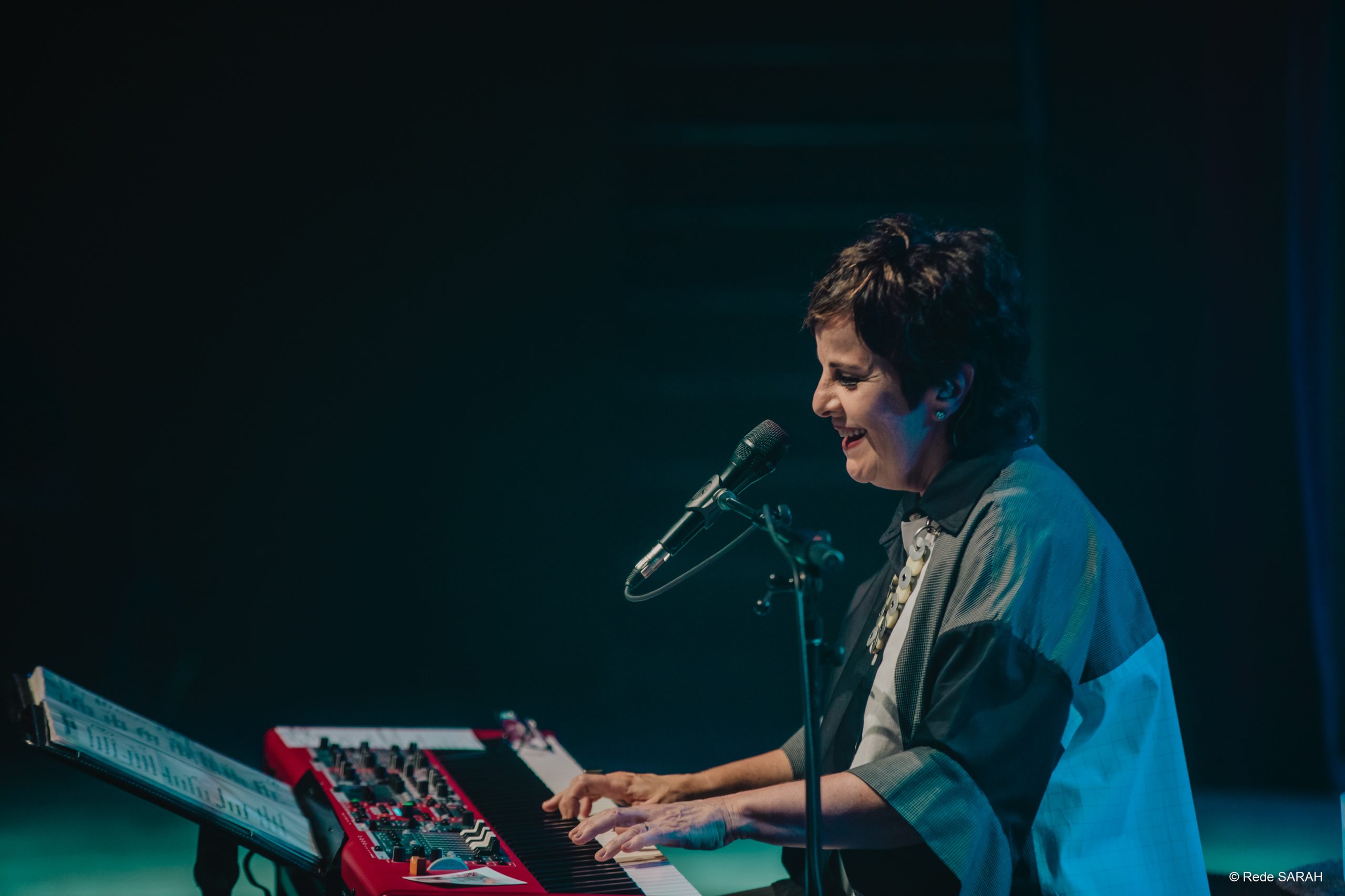 “Verde” e “Coisas do Brasil” foram as músicas escolhidas para abrir sua performance, já arrancando aplausos da plateia. A cantora e pianista, que chegou a cursar alguns semestres de medicina, comentou sobre como sente que o convite para cantar no palco do SARAH é uma forma de ajudar em todo o processo de reabilitação dos pacientes. “É com grande honra que recebi esse convite. Eu ia de fato ser médica, mas meu verdadeiro ofício é oferecer a vocês minhas receitas musicais. Escolhi cada música a dedo.”, declarou em meio ao show.