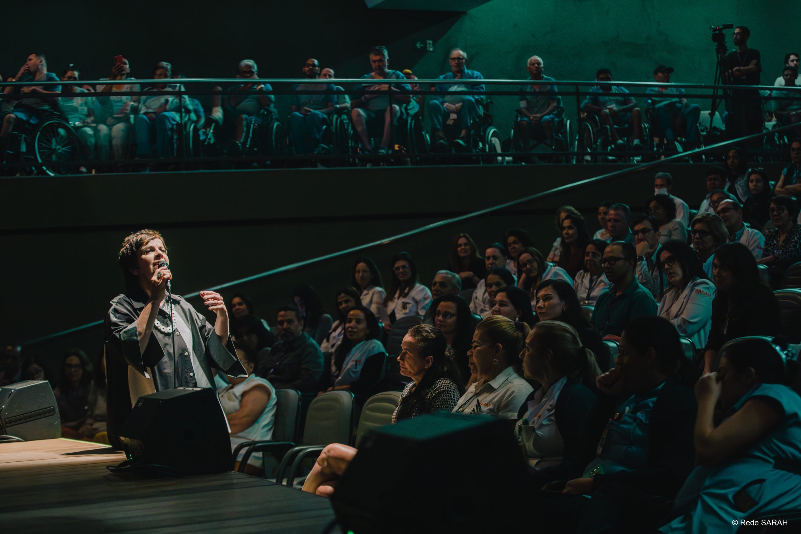 Junto ao coro da plateia, cantou “Serra do Luar” alternando as estrofes que cantava com o público, que completavam a letra, animados. A mesma energia foi levada em “Andar Com Fé” de Gilberto Gil, a quem Leila considera um grande amigo, e “Pro Dia Nascer Feliz”, música do álbum que a artista gravou em homenagem a Cazuza. “Hoje, foi à segunda vez que venho e eu amei a apresentação, fiquei muito emocionado. É um momento muito gratificante pra gente que está se reabilitando por que a música tem o poder de tocar a gente, de adentrar o mais fundo da nossa alma e ter essa oportunidade aqui no SARAH é muito rico, muito bom”, disse o paciente do SARAH, Milson Oliveira dos Santos, de 32 anos.