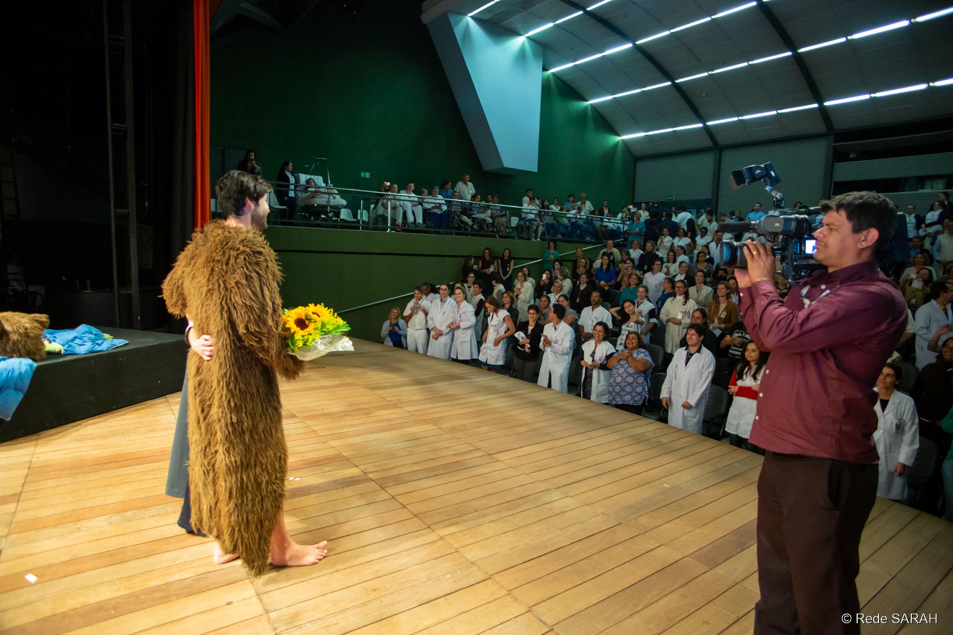 Entre risadas e momentos de silêncio reflexivo, os pacientes, acompanhantes e colaboradores do SARAH Brasília assistiram, no dia 22 de junho de 2017, a encenação da peça “Eu te Amo”, com Juliana Martins e Sérgio Marone. O texto, que deu origem ao filme homônimo de 1981, foi adaptado para o teatro, com a direção de dois cineastas, Rosane Svartman e Lírio Ferreira.