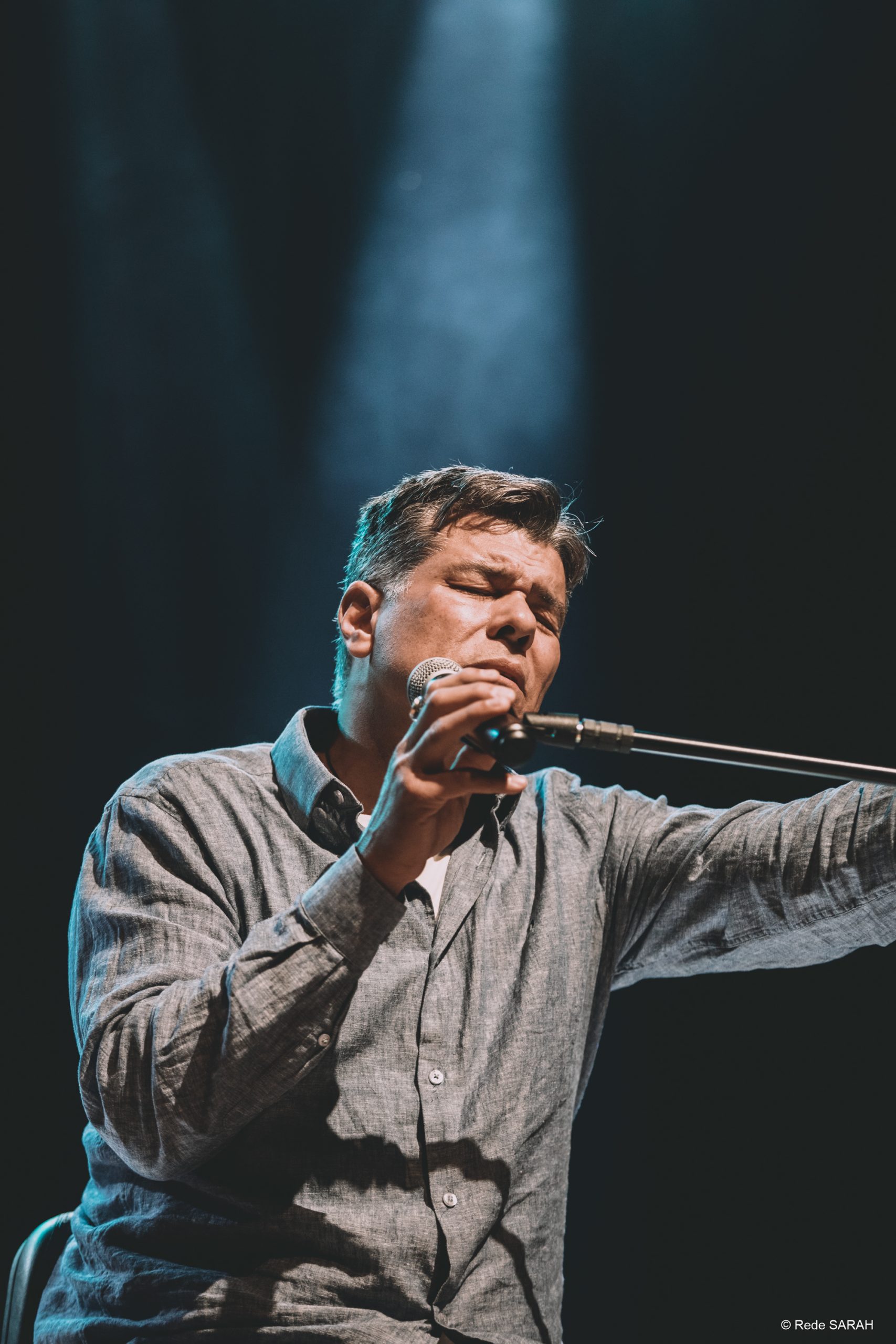 Acompanhado por Caio Santos, no violão, e Alan Ferreira, no teclado, o cantor abriu o show com o sucesso “Nada Apaga Essa Paixão” junto com as várias vozes da plateia. Em seguida, o compositor apresentou a música “Pra Ficar Contigo” e desceu do palco para interagir com todo o público, nos quatro cantos do teatro, convidando alguns pacientes e colaboradores para dividir o microfone.