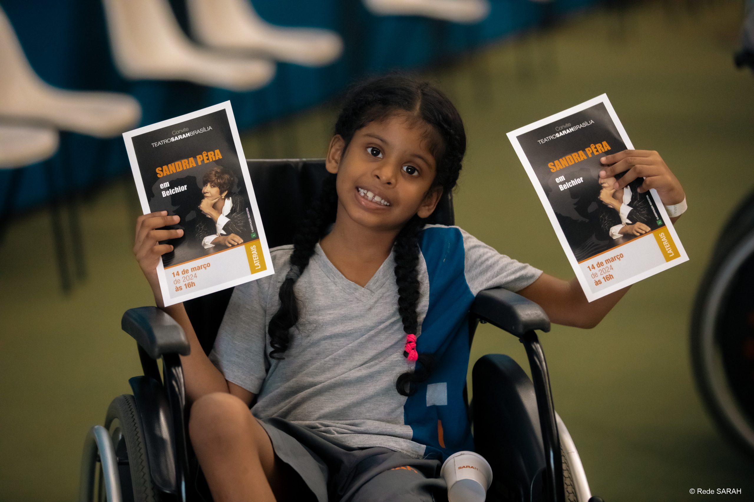 Em apresentação exclusiva para pacientes, acompanhantes e colaboradores da Rede, na tarde de 14 de março de 2024, o Teatro SARAH Brasília recebeu a cantora, compositora, atriz, escritora, diretora e produtora Sandra Pêra.