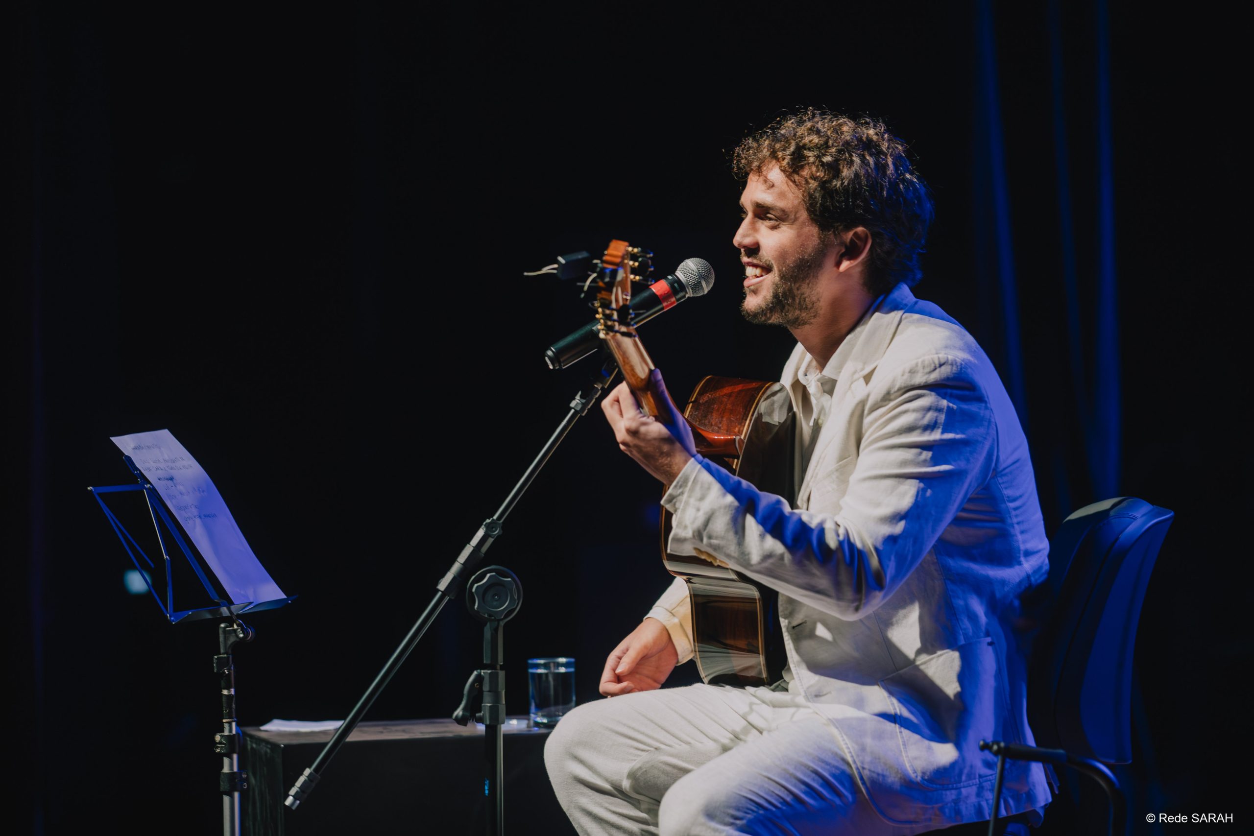 Pela primeira vez em Brasília, o Teatro SARAH recebeu em seu palco o cantor e compositor Theo Bial. Tecendo elogios à cidade, o artista envolveu a plateia com sua voz suave ao interpretar a canção “Samba de Verão”, de Caetano Veloso, em um arranjo original, junto a “Wave”, de Tom Jobim. Em seguida, passando para sua especialidade, a bossa nova, entoou a clássica “Garota de Ipanema”.