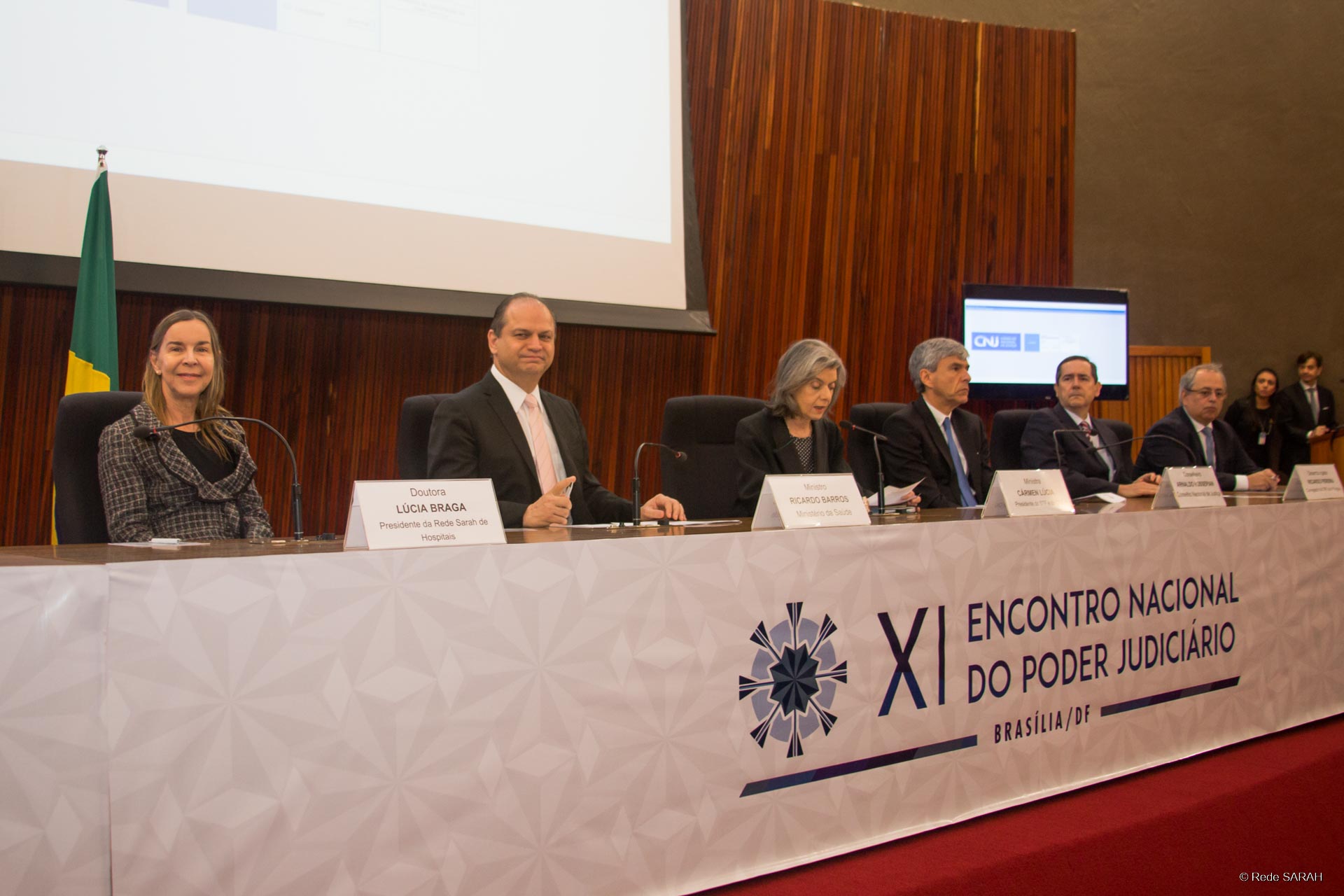 No dia 21 de novembro de 2017, Dra. Lúcia Willadino Braga, presidente da Rede SARAH, proferiu palestra durante o XI Encontro Nacional do Poder Judiciário, no Conselho Nacional de Justiça. Com o tema “Saúde e Justiça: A Perspectiva da Rede SARAH”, a palestra da neurocientista abordou os princípios filosóficos do tratamento oferecido pela Rede SARAH, baseado na coleta e na análise de evidências científicas. O convite foi feito pela Ministra Carmem Lúcia, presidente do Supremo Tribunal Federal e do CNJ. A cerimônia destacou o lançamento de uma plataforma do CNJ com dados técnicos, na área da saúde, para subsidiar a tomada de decisão dos tribunais.